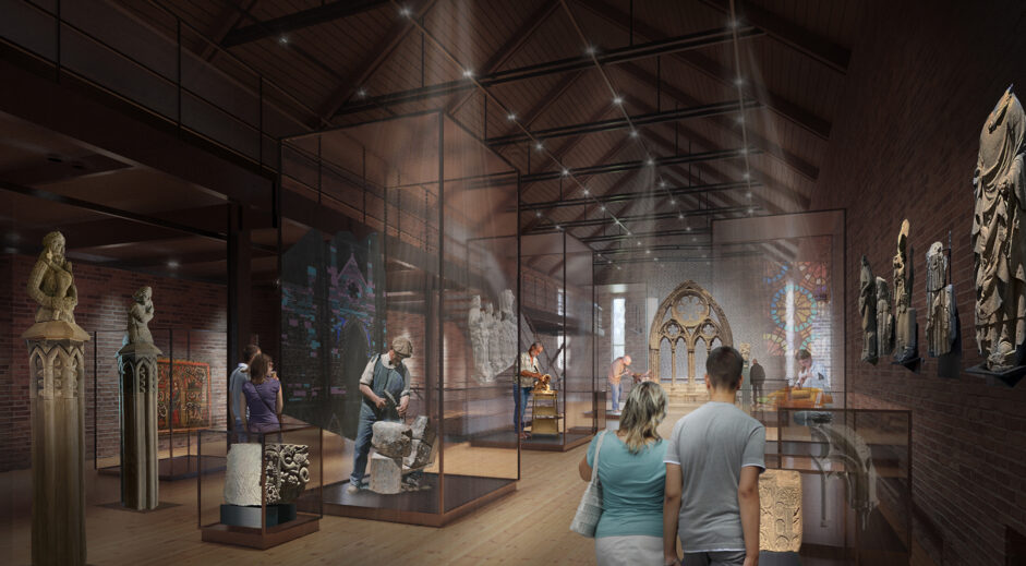 KVORNING, SLA, and Substrata developed a preliminary study and an overall spatial plan for the outdoor areas, courtyards, and workshops of the Archbishop’s Palace and the cathedral. Furthermore, a concept for a series of permanent and temporary exhibitions in the Archbishop’s Palace, at Nidaros Cathedral’s Restoration Workshop, as well as for parts of the Norwegian Crown Jewels stored in the vaults beneath the Archbishop’s Palace.