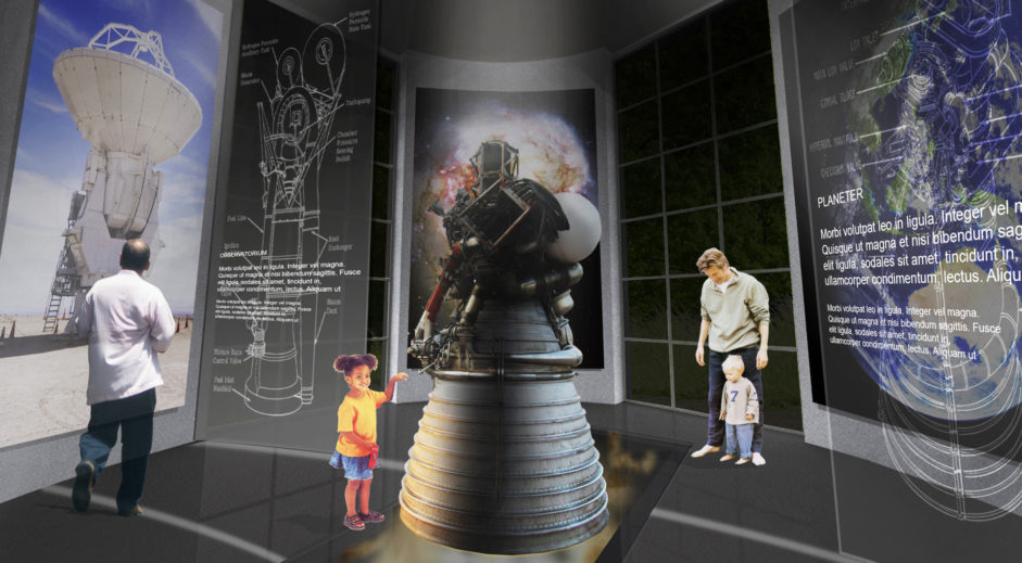 Kvorning has developed many of the interior and experiential concepts for Brorfelde Observatory, which is the largest astronomical observatory in Denmark. Today, a science and experience centre within astronomy, geology, technology and nature.