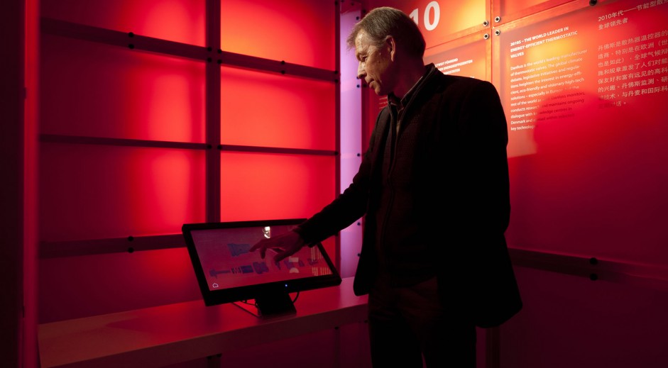 Kvorning delivered a digital experience path, the exhibition, graphic design, hands-on as well as interactive media. A gigantic replica of Danfoss best-selling thermostat was custom-built for the occasion. The Brand Experience is mobile and built like a room inside another room. It opened to the public in July 2011.