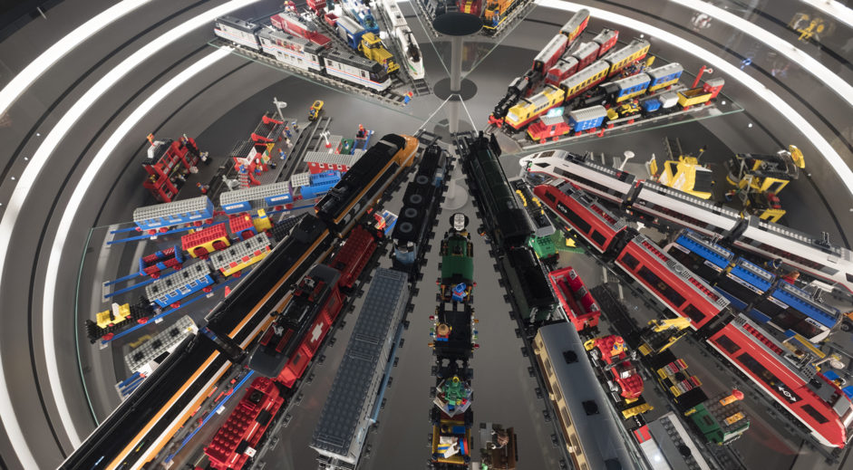 Halfway through the collection visitors will see a light which lures them into a room resembling the interior of a giant LEGO brick. An exhibition of original LEGO models and boxes through decades. Anyone can find a cherished LEGO box, either as a physical model or on the interactive table displaying more than 5,000 LEGO boxes. In big round showcases and along the walls are hundreds of original models and boxes on display to stir dear memories.