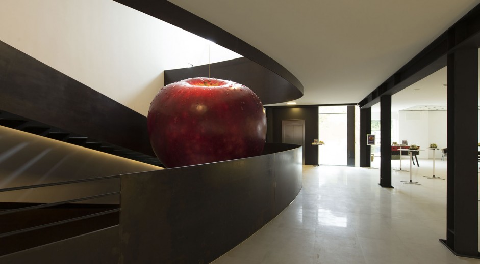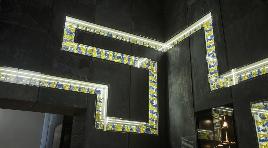 The characteristic cube-outline of Kvorning’s exhibition design forms a stylized landscape, which grows upwards on the top floor and downwards downstairs thus creating additional both expressive and intriguing spaces.