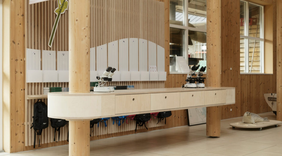 The exhibition in birch plywood appears atmospheric and delicate. It is also flexible, so the exhibition space can be cleared and turned into a conference room in just a few minutes.