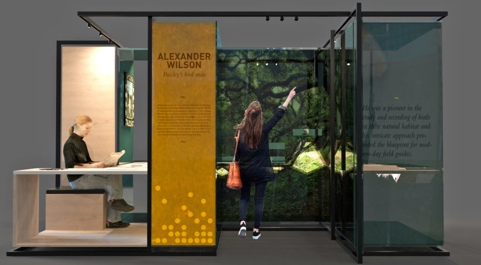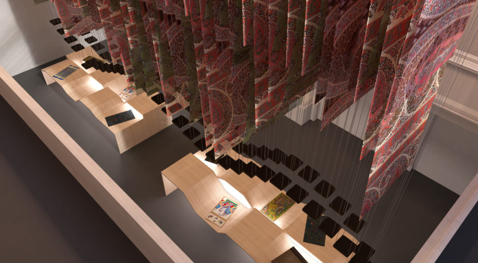 Kvorning’s concept creates a highly flexible, spatial environment – working with both existing and new axes and sightlines in Paisley Museum. 100 stories with focus on the unique objects presented in a delicate pattern – weaving the stories and immersive key attractions together in a series of breathtaking exhibition experiences.