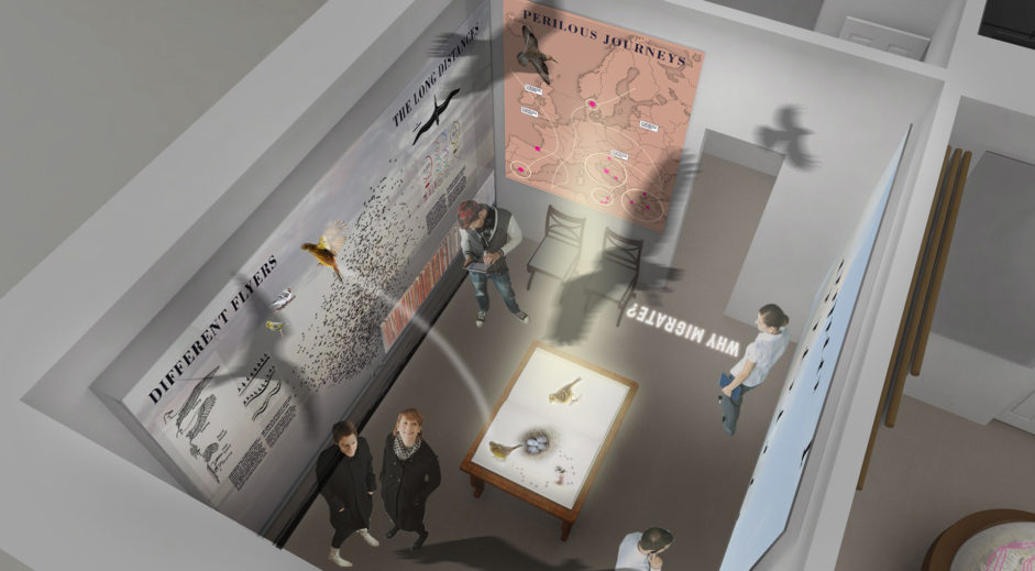 Kvorning developed the pre-concept ’Beating of Wings – Birds and people at Skagen Gren’. The concept was key to raising the necessary funding for the exhibitions now realized by Art+Com at the experience center.