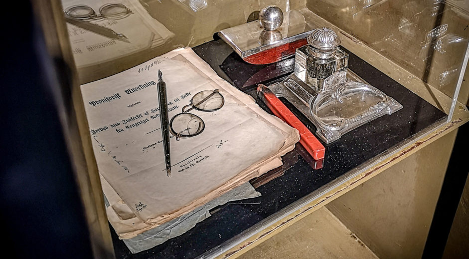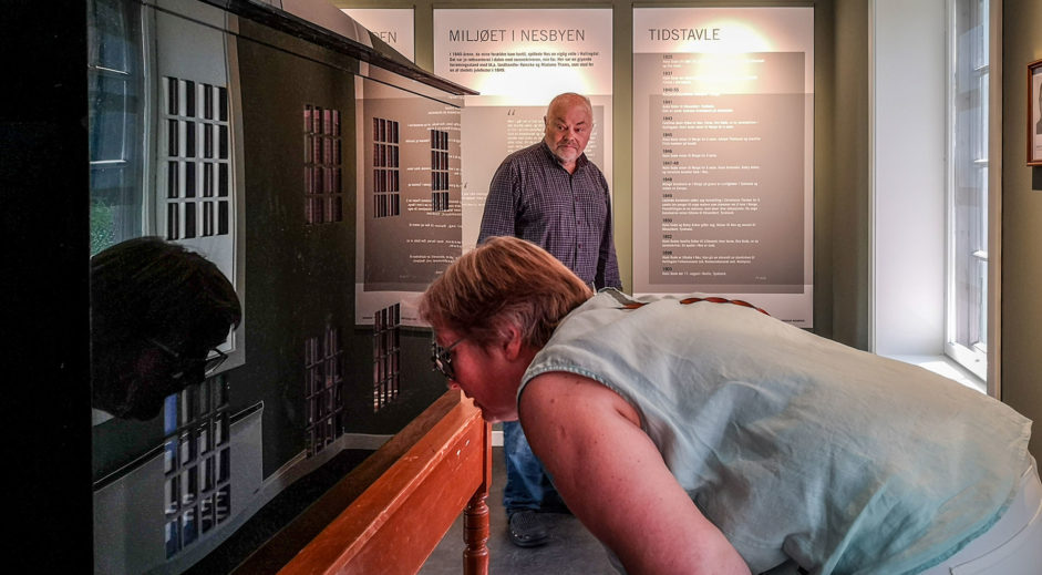The exhibition offers surprising and innovative elements, fx video-mapping and an acrylic model of Sorenskrivergården brought to live by Peppers Ghost technique. Kvorning won the project in invited, international competition.