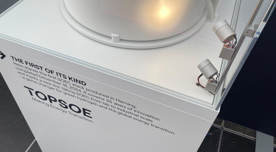 KVORNING created a truly distinctive centerpiece for Topsoe’s inauguration of the technology company’s first production facility for Solid Oxide Electrolyzer Cell (SOEC) stacks in Herning on October 30, 2025. Stack #1 was to be unveiled to the global press.