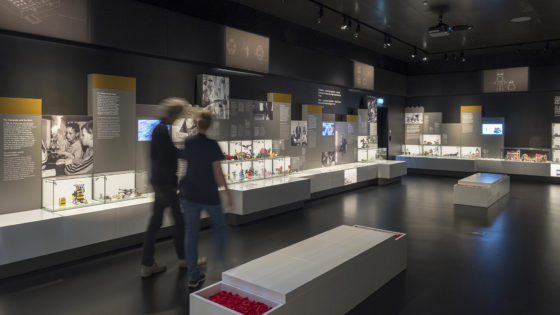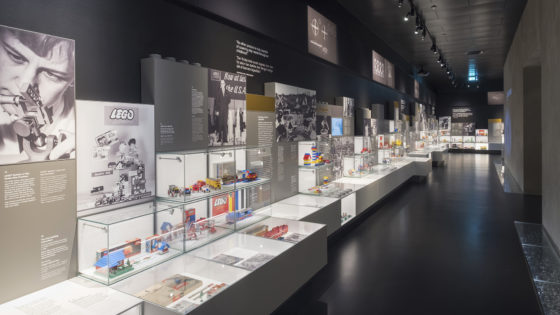 As grown-ups and kids head down the stairs, or descend by the elevator, into the basement and the History Collection, they are welcomed by a 2 x 2 metre logotype. Here they explore their own childhood through the gems of the exhibition: LEGO products conveying the company’s long history though significant milestones, drawings and models. Everything a true Lego fan could possibly imagine. Also animations of kids playing in classic scenarios.