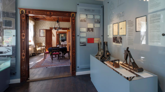 Displays operate on sight-lines and axes, positioning central experiences and points de vues at the end of them, with one room thereby introducing the next. In parallel with Mads’s life story and Danfoss’s development, the rooms and the stories unfurl – ups and downs – joys and sorrows.